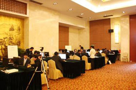 臺(tái)上晟皞經(jīng)理精彩演講,臺(tái)下企業(yè)家們聽得聚精會(huì)神遇到不懂的及時(shí)向我們的工作人員請(qǐng)教