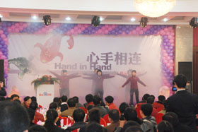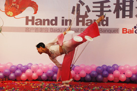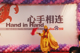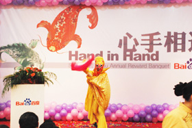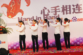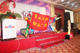 陽(yáng)光絢爛,暖暖的冬風(fēng)輕拍著臉蛋,心情格外的爽快。2008年12月20日,“心手相連”百度客戶答謝會(huì)在鹽城山青水秀綠色生態(tài)美食園隆重舉行,200多人的會(huì)場(chǎng)坐無(wú)虛席!此次會(huì)議可謂“眾星云集”,泰州名主持小柏?fù)?dān)任此次會(huì)議的主持,我們也有幸邀請(qǐng)到百度客服經(jīng)理張鵬擔(dān)任此次會(huì)議的主講。午宴開始前百度渠道部經(jīng)理晟皞的祝酒詞,百度市場(chǎng)部經(jīng)理李方巖的“友情客串”,為此會(huì)議的舉辦增色不少。